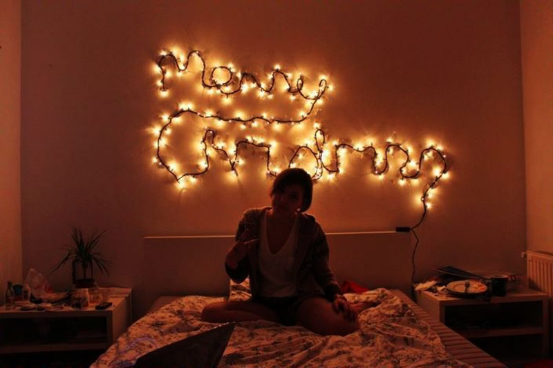 Bên cạnh đó, bạn cũng có thể làm tăng thêm sự ấm cúng và lấp lánh hơn bằng những chiếc đèn Led, làm phòng ngủ thêm ấm áp.