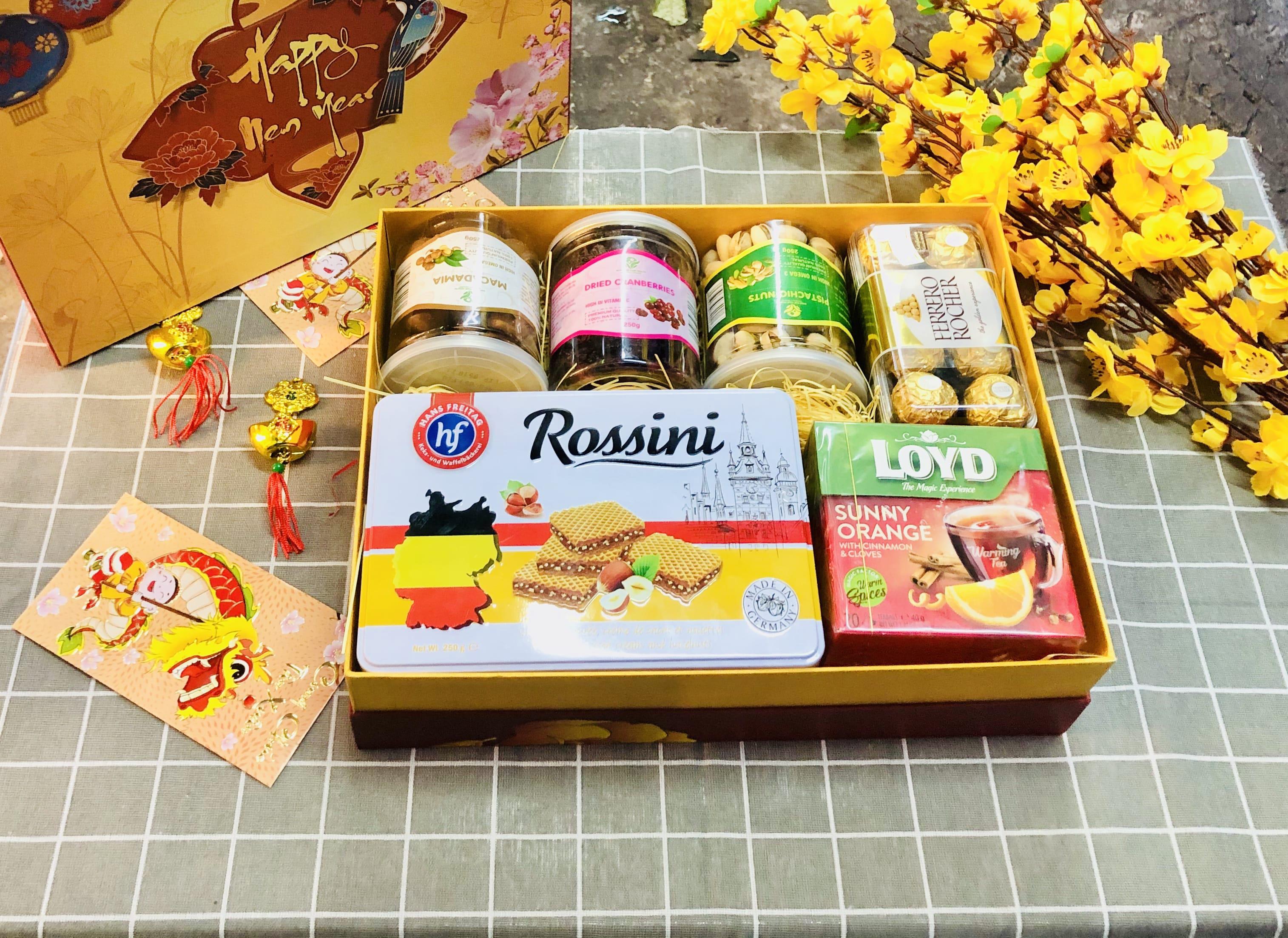 Với mức giá vô cùng hợp lý, bạn đã có một set quà tết lịch sự, ấn tượng với vang, mứt và bánh. Túi đựng, Hộp quà và nhãn mác sản phẩm...